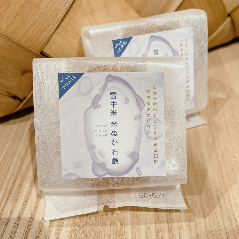 無着色・無香料で造った自然派の石鹸です。北海道沼田町の特Aランク米、「雪中米」の米ぬかを原料に加え、保湿成分を配合。